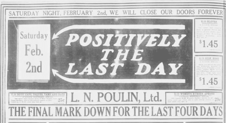 У магазину “Пулен” не було якихось фінансових проблем, проблем з орендою чи земельними ділянками, у Луї Пулена навіть було кому передати бізнес. У нього було четверо синів. Але в 1929 році, Луї вирішив піти на пенсію і закрити свій успішний бізнес. Жителі Оттави були просто шоковані, адже жодних проблем у магазину ніколи не було. У такому ж шоці було понад двісті співробітників “Пулен”, які через закриття магазину втратили роботу. Але рішення Пулена було незмінним, він досяг того до чого йшов все життя.